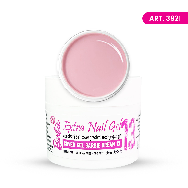 Cover Gel No. 13 je profesionalni gel, formulisan bez HEME, DI-HEME i TPO-a, sa visokom viskoznošću, idealan za izlijevanje noktiju, pinčovanje i kreiranje prirodnog izgleda noktiju zahvaljujući svojoj neprozirnoj formuli. Dizajniran da pruži savršeno pokrivanje nepravilnosti na ploči nokta, ovaj gel je odlična podloga za French i savršen je za izgradnju svih dužina noktiju, kao i za korekciju.  Ključne karakteristike: Neprozirna formula – savršeno prikriva nepravilnosti na ploči nokta Monofazni gel 3u1 – koristi se kao baza i gradivni sloj Odlična podloga za French  Pogodan za izlijevanje dugačkih noktiju HEMA-free, DI-Hema free, TPO-free – siguran za sve tipove kože i noktiju Visoka viskoznost – pruža potpunu kontrolu tokom rada Fiberglass vlakna –  omogućava dodatnu čvrstoću i trajnost Samonivelišući – ravnomjerno nanošenje bez slijevanja Srednja tiksotropija – ostaje na mjestu tokom rada Srednje gustine Elastičan i ne puca – pogodan za ekstremne dužine Sušenje: 60 sekundi u LED lampi Profesionalni kvalitet – idealan za početnike i iskusne manikire Proizvedeno u EU – garancija kvaliteta i sigurnosti Cover Gel No. 13 – vrhunski gel za profesionalce, pruža savršenu osnovu za French manikir, čvrstoću i dugotrajnost svakom manikiru.